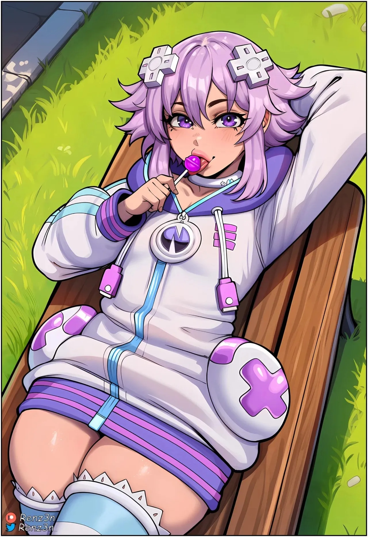 Quadrinho Adulto Hentai HQ Pornô com Bunda Grande, Cabelo Roxo, Creampie e Estocadas fazendo paródia de Hyperdimension Neptunia Hentai desenhado pelo artista Renz3n