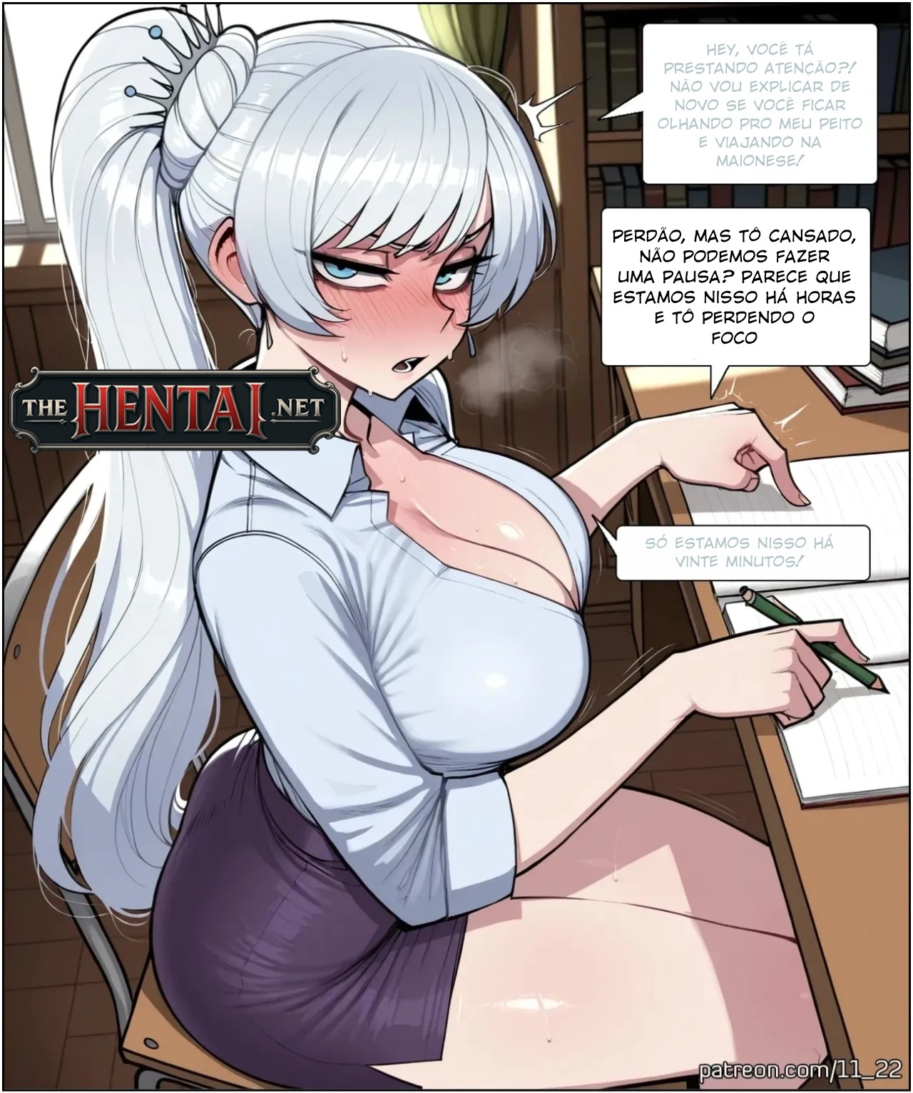 Exclusividade The Hentai: Hentai da tutora Weiss, praticamente resumindo o que acontece quando a professora que está dando a aula é uma gostosa de alta qualidade: O aluno não consegue prestar atenção porque está excitado demais reparando nas curvas do corpo da tutora, resolvendo fazer uma pausa pra foder violentamente e gozar a maior quantidade de sêmen possível dentro de seu útero.