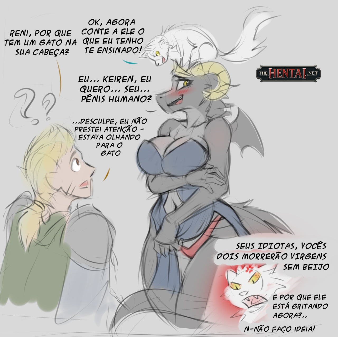 Exclusividade The Hentai: Um cavaleiro está com dois dragões, conversando e flertando. Pronto para comer, o dragão preto é mais ingênuo e nunca transou com alguém antes, enquanto o dragão branco é mais safado e começa a chupar a pica do cavaleiro para deixá-la lubrificada para enfiar no dragão negro, para ele gozar na buceta dela. Mas vendo que isso não estava funcionando, ela dá um incentivo e enfia o rabo dentro do cu do cavaleiro para ele sentir mais tesão.