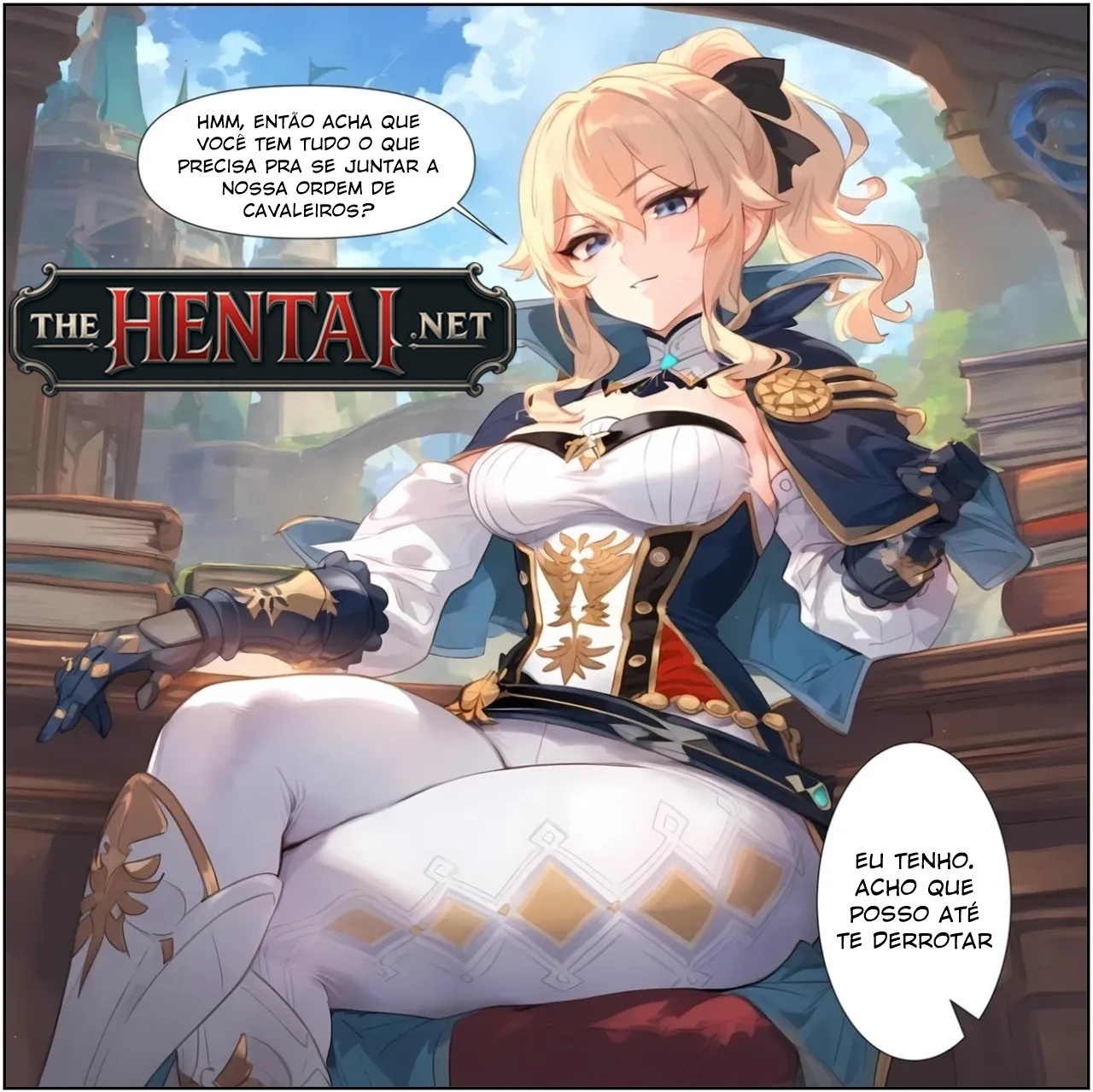 Exclusividade The Hentai: Hentai de Genshin Impact em que a cavaleira Jean é desafiada por um novato em sua guilda, porém ela aposta que o perdedor terá que fazer tudo o que o vencedor mandar, sem nem questionar. O novato vence e ela acaba recebendo um desejo: ir encontrar com ele vestindo uma lingerie. Ela é obrigada a cumprir com sua palavra, e depois disso acompanhamos uma cena de sexo entre Jean e o negão bombado.